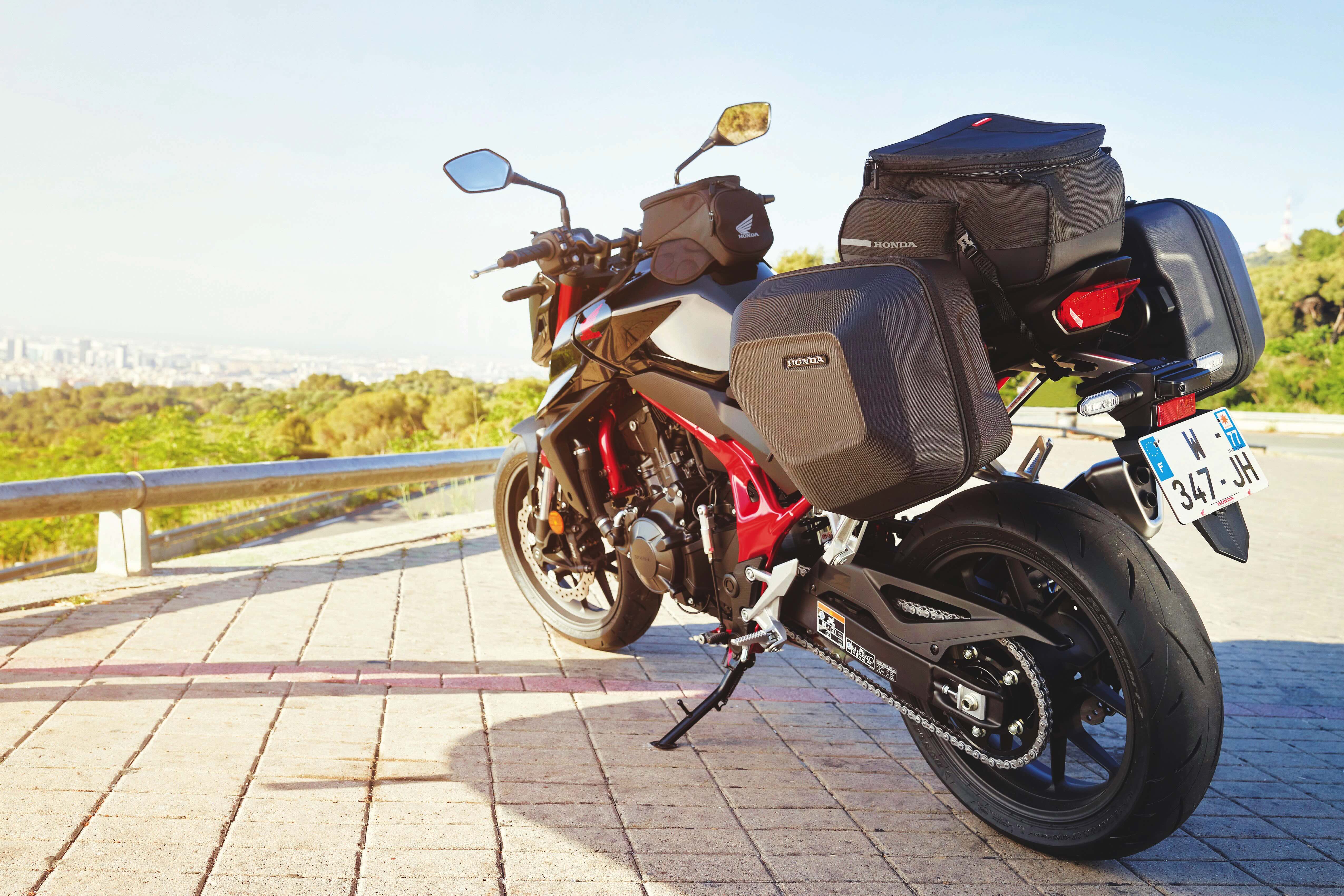 Honda is offering a suite of accessories for the CB750, including luggage, heated grips, quickshifter and bling bits. The seatbag and tankbag looked especially good, the panniers… they mount high and beside the pillion seat, with some of the weight carried behind the rear axle. Not as nicely integrated as some, but it’s awesome to see Honda taking the versatile role the Hornet will be expected to fill seriously.